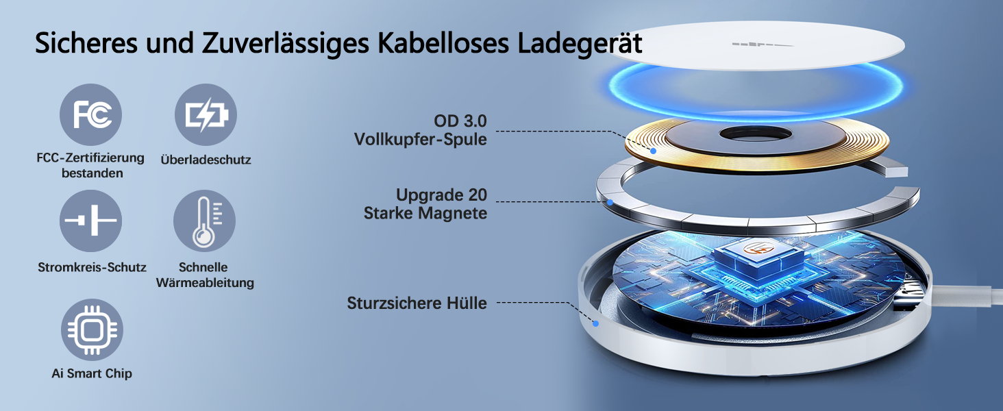 👍【Easy to install】This wireless charger for the iPhone always charges and keeps the device safe. If the anti-iPhone has overcharging, over-current, over-voltage, overheating or short circuit, the LED light on the magnetic charger flashes quickly and continuously and stops charging.