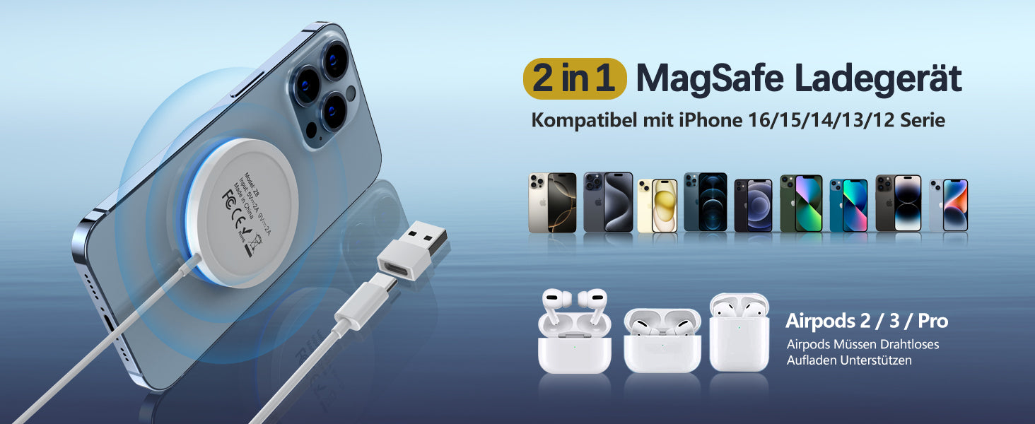 Easy to clean. 12 / 1 / 1 / 16 series: the magnetic wireless charger provides up to 5W/7.5W/10W/15W wireless fast charging for your iPhone. Our Mag Safe charger is especially suitable for iPhone 16 Pro Max/ 16 Pro/16/16 Plus/15 Pro Max/ 15 Pro/15/15 Plus/14 Pro Max/14 Pro/14/14 Plus/13 Pro Max/13 Pro/13/13 Mini/12/12 Pro/12 Mini/12 Mini/12 Pro Max and AirPods Pro 3 2 and iPhone models with Mag-Safe cases. ⚠️Warm Tips Please use the Mag-Safe case for stronger magnetization, normal cases weaken magnetic adsorption.