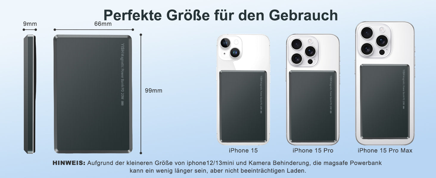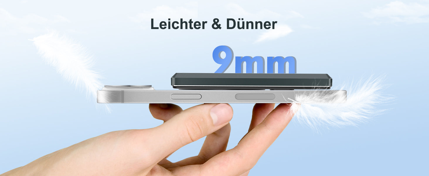 Ultra-slim and lightweight: this 5000 mAh magnetic power bank has been designed for maximum portability (9.9 x 6.6 x 0.9 cm) and has an ultra-slim, carded profile with a thickness of only 9 mm and a weight of only 124 g - it fits effortlessly in your bag or backpack.